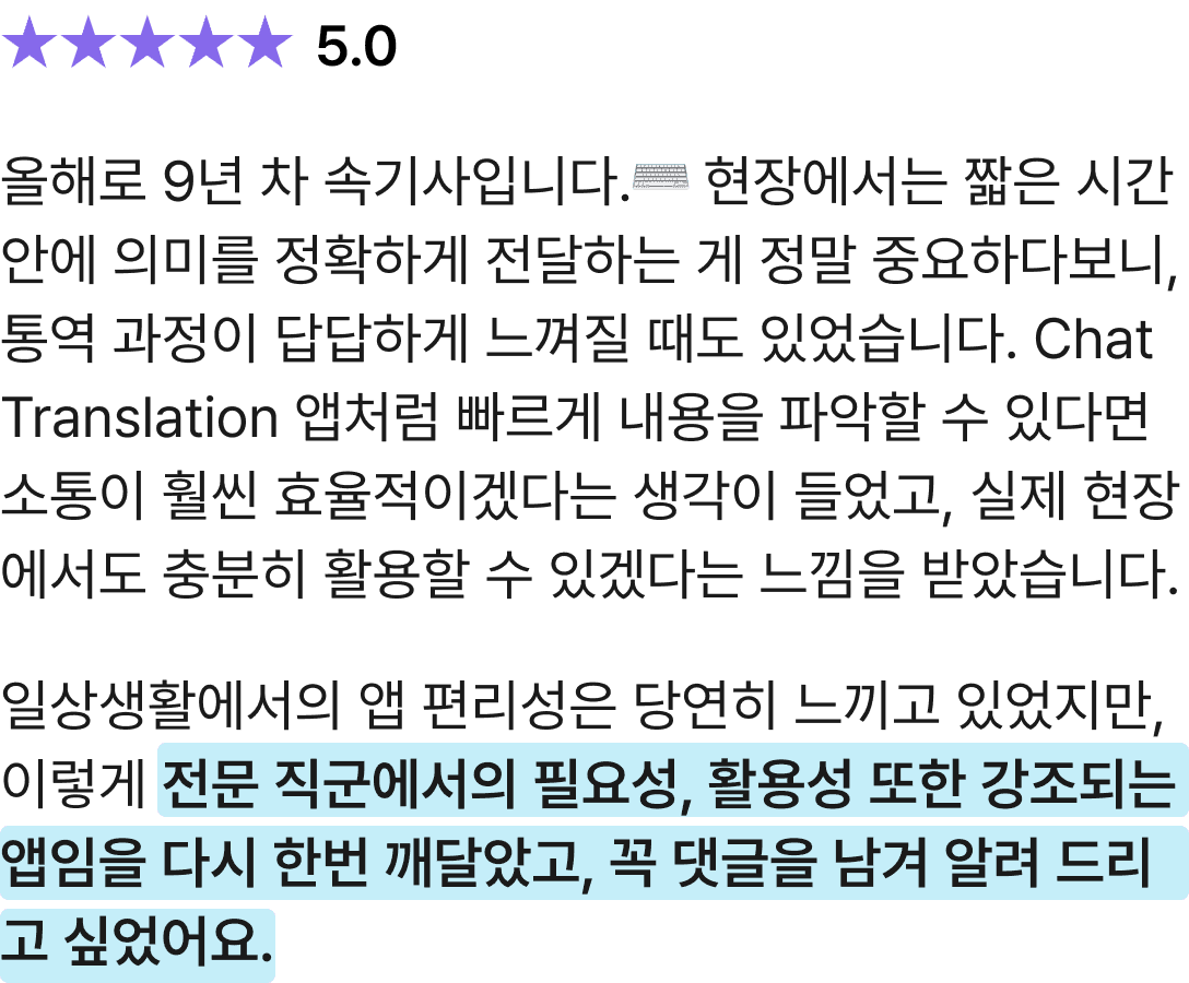 Chat Translation 유저들의 실제 리뷰입니다.